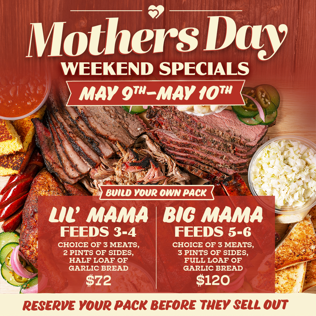 Mother’s Day weekend calls for something worth gathering around. From May 9th–10th, we’re serving up something special with our build-your-own packs, made for sharing and built to feed the whole table. Slow-smoked meats, classic sides, and everything you need to make the weekend feel easy.
